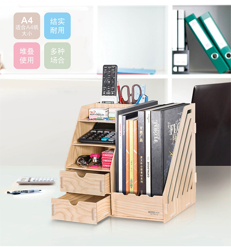 京东自营金隆兴 (glosen)办公桌面收纳盒办公用品大号多层抽屉文件置物架木质储物盒