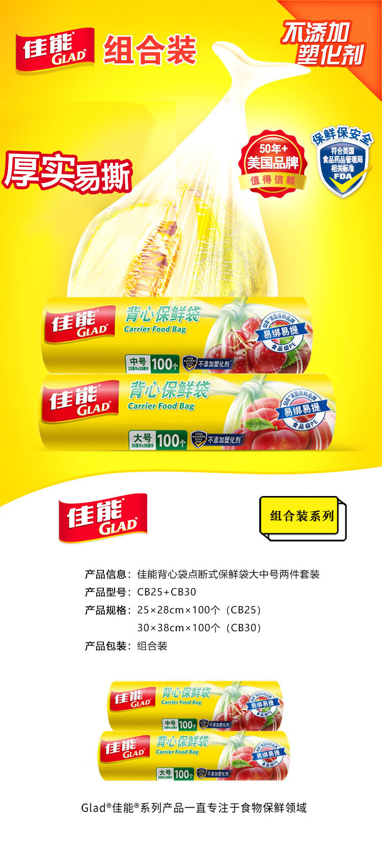 京东自营佳能(Glad)背心袋点断式保鲜袋大中号两件套装CB25+CB30