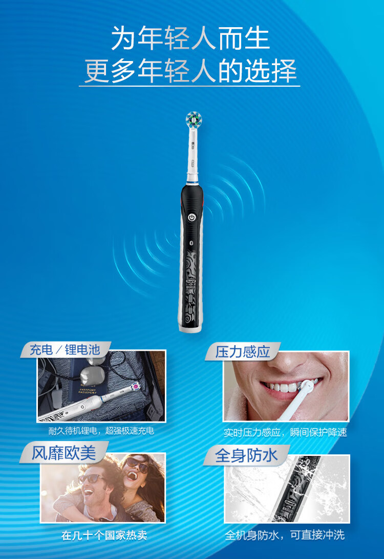 京东自营欧乐B电动牙刷 3D声波成人情侣正畸牙刷青春版 P4500黑 博朗精工