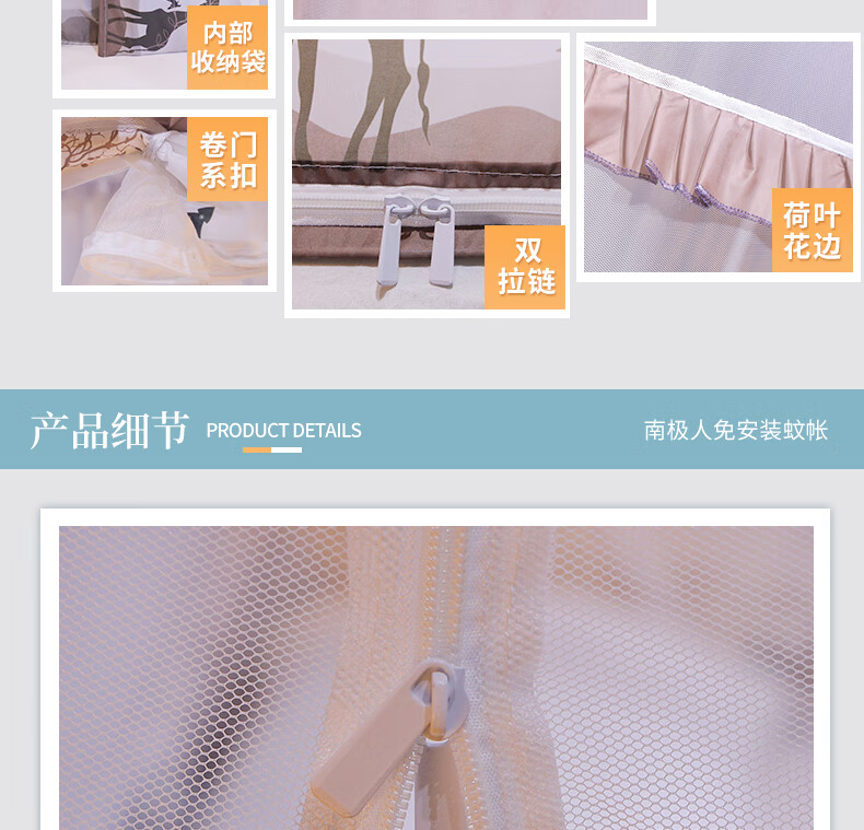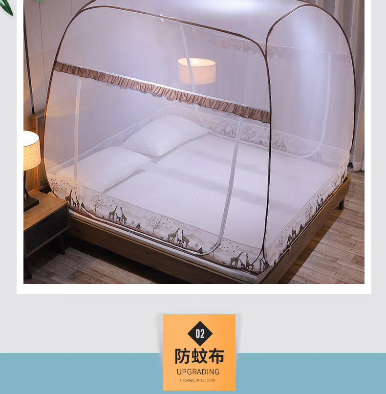 京东自营南极人NanJiren 蚊帐 三开门免安装钢丝蚊帐 拉链蒙古包宫廷坐床式纹帐 1.5米床 牛油果
