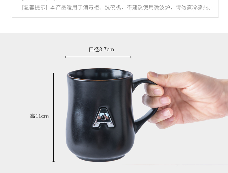 京东自营佳佰 创意陶瓷杯子情侣水杯咖啡杯办公马克杯大容量水杯牛奶杯定制 A字母杯腰型黑色