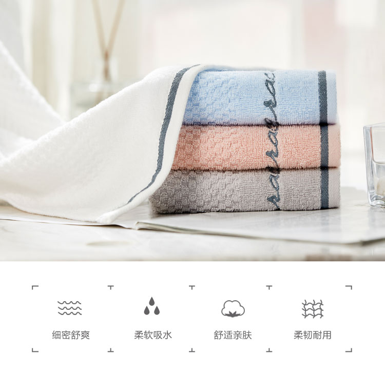 京东自营洁丽雅(Grace)毛巾家纺 纯棉绣花洗脸巾简约素雅面巾擦脸洁面巾四条装 红*兰*白*灰各一条