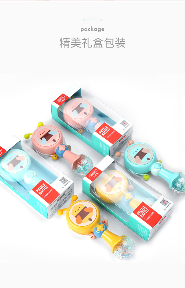 京东自营贝恩施 宝宝早教玩具 新生婴儿手摇铃 多功能音乐拨浪鼓B204 粉色