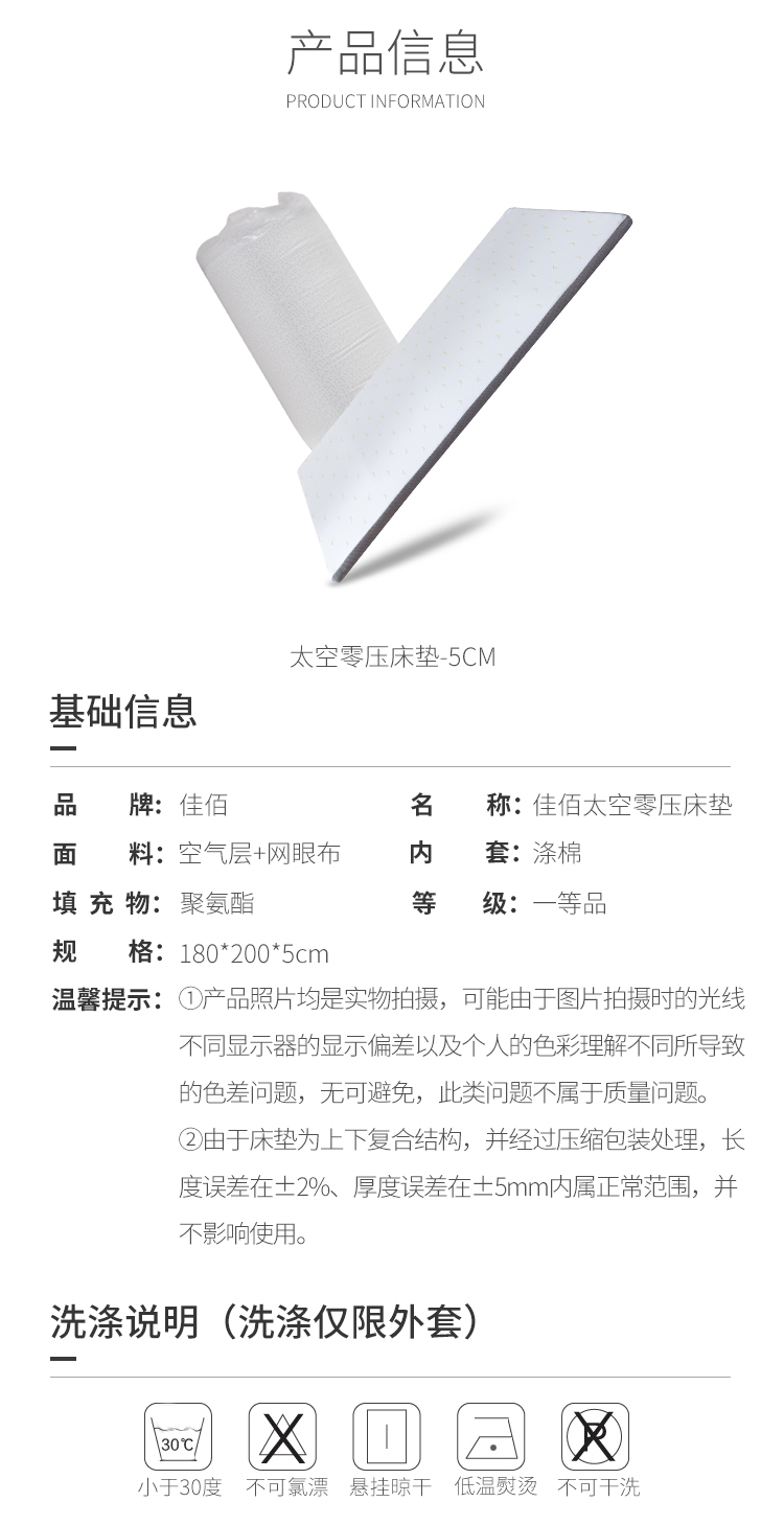 京东自营佳佰 零压记忆棉床垫子海绵榻榻米双人床垫床褥180*200*5cm