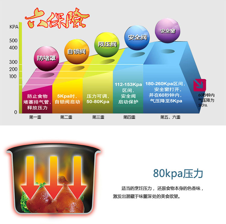 京东自营爱仕达 26CM六保险T型高压锅JXT7526带蒸格 燃气压力锅商超同款