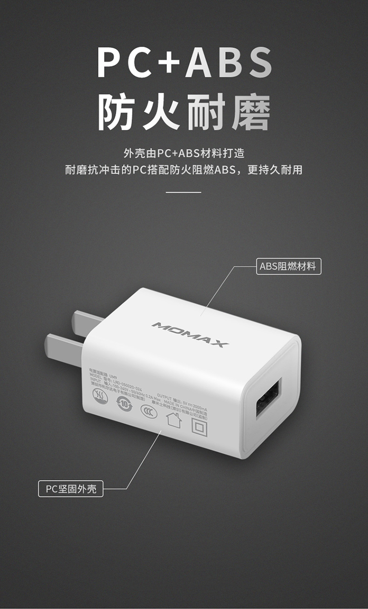 京东自营摩米士MOMAX USB充电器苹果安卓手机快充充电头迷你插头通用平板移动电源等 白色