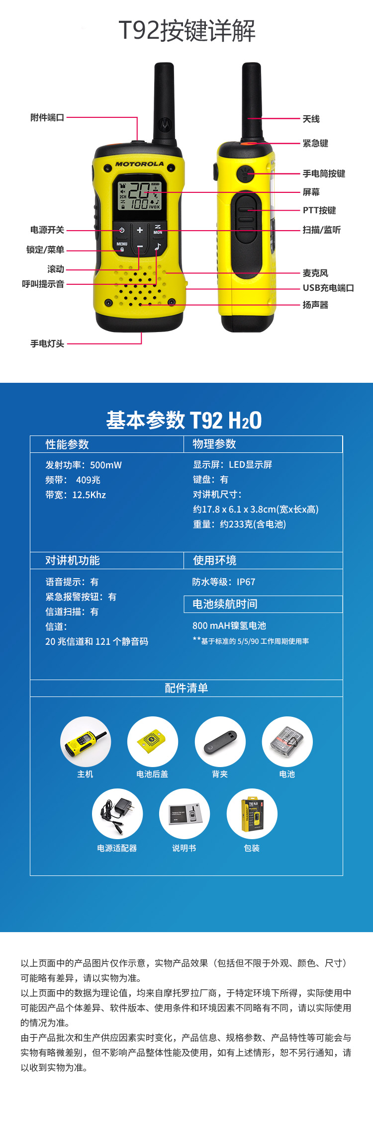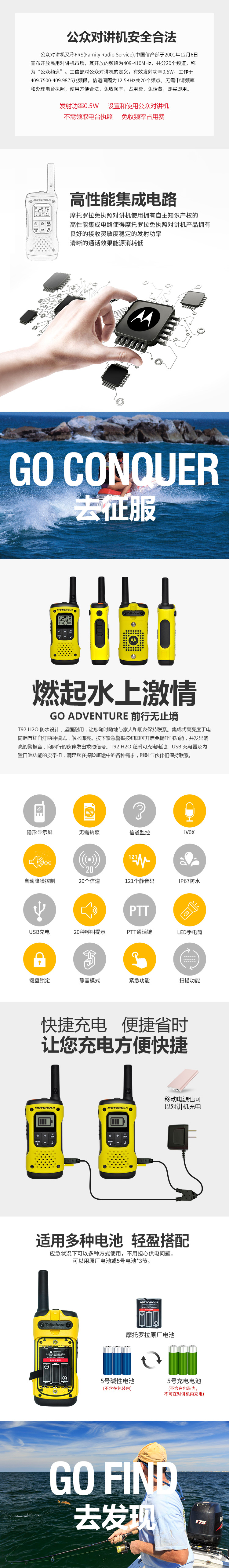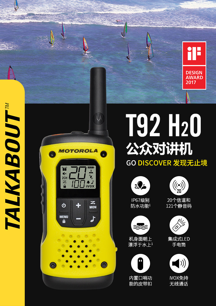 京东自营摩托罗拉(Motorola)T92 对讲机 户外自驾海事救援 防汛抗洪作业手台T80/T80EX升级款