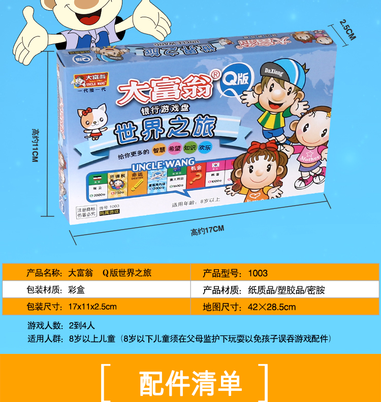 京东自营大富翁桌游卡牌游戏棋类玩具桌面游戏Q版世界之旅1003 转盘玩具铜牌系列