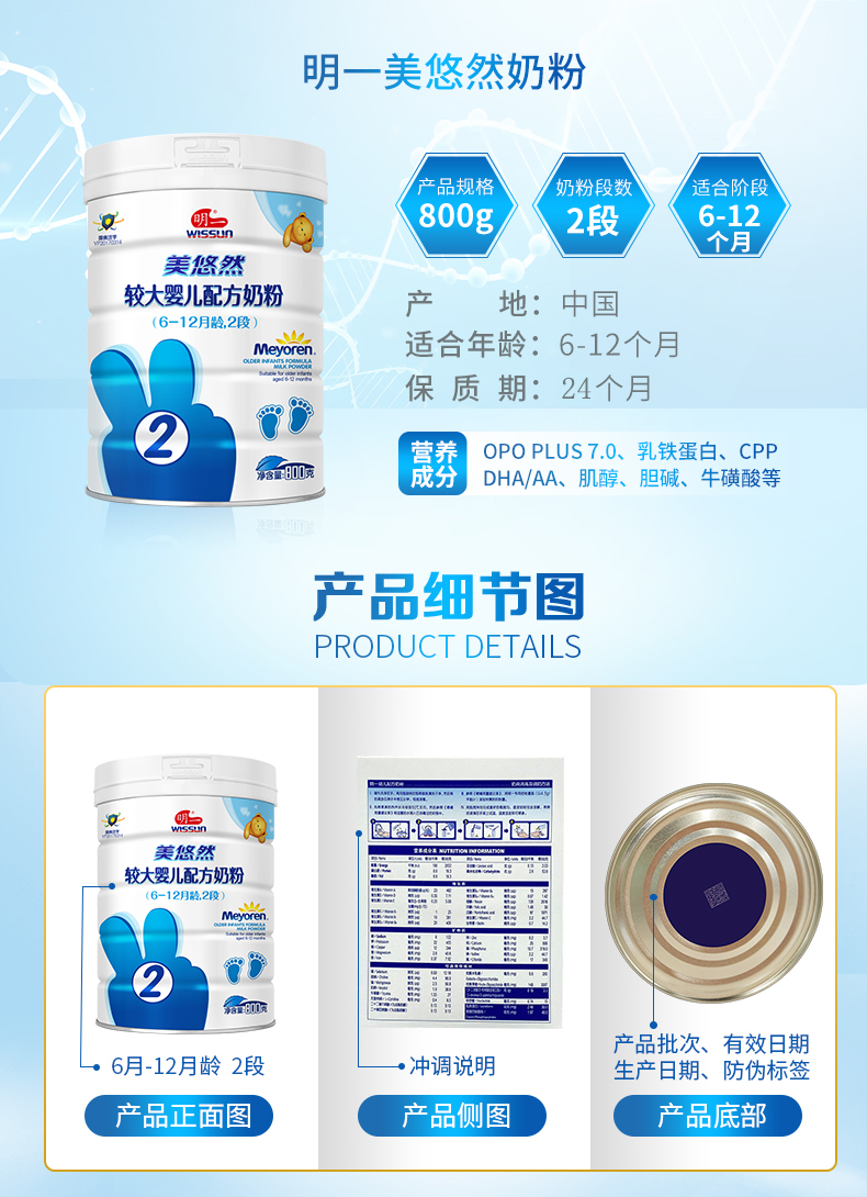 京东自营明一(wissun)美悠然较大婴儿配方奶粉 2段(6-12个月婴儿适用)800克