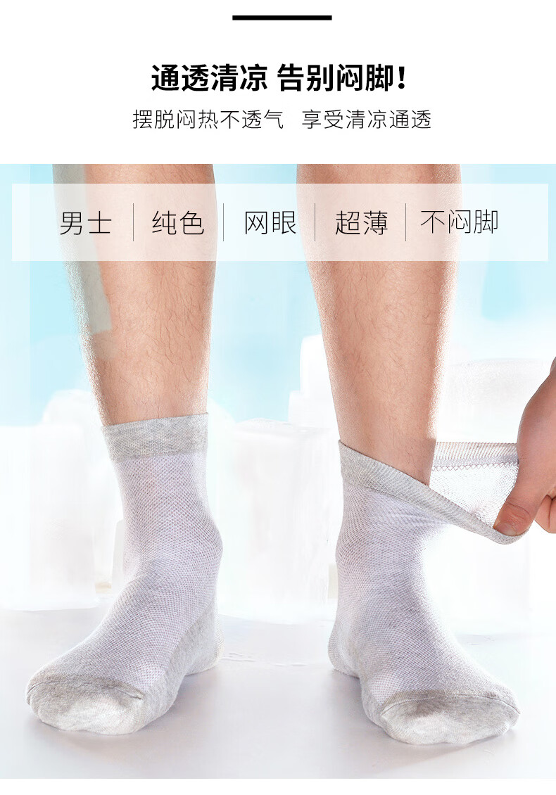 京东自营浪莎袜子男 纯棉夏季网眼透气男袜全棉吸汗商务休闲舒适男士中筒棉袜6双装 黑色6双 均码