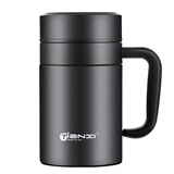 京东自营天喜(TIANXI)保温杯 水杯男士茶杯真空304不锈钢带把保温壶商务办公泡茶杯子 带茶漏手柄 黑色420ml