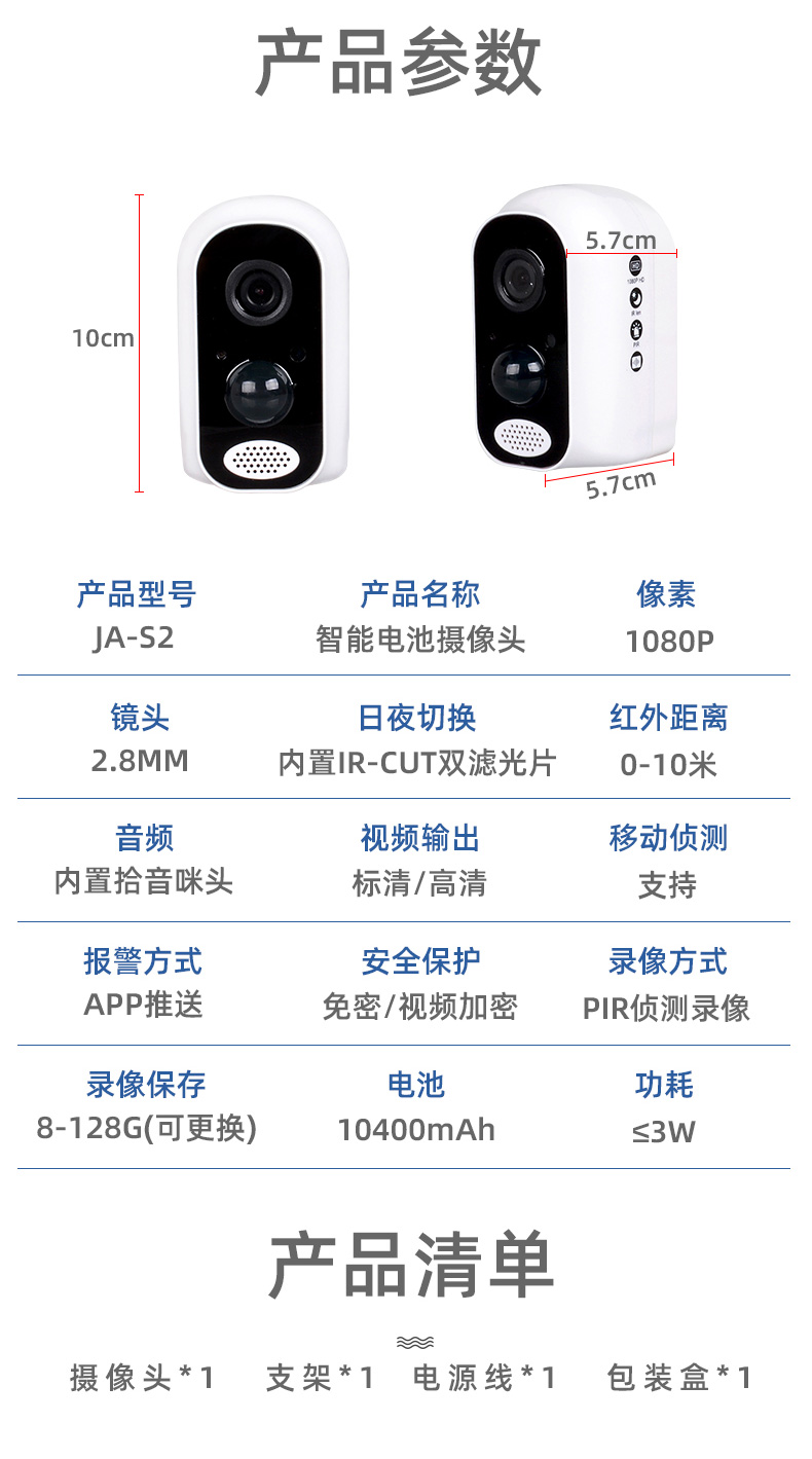 京东自营乔安(JOOAN)JA-S2乔安自带电池无线摄像头充电监控高清手机远程wifi家用室外免插电