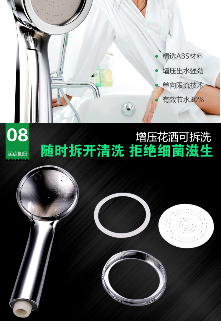京东自营秉优 淋浴喷头热销 增压负离子花洒 可拆卸式 花洒过滤 节水花洒