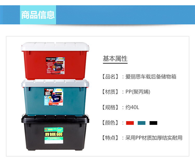 京东自营爱丽思IRIS 车载收纳箱RVBOX600 约40升车载储物箱大号收纳箱后备箱整理箱 红/白色