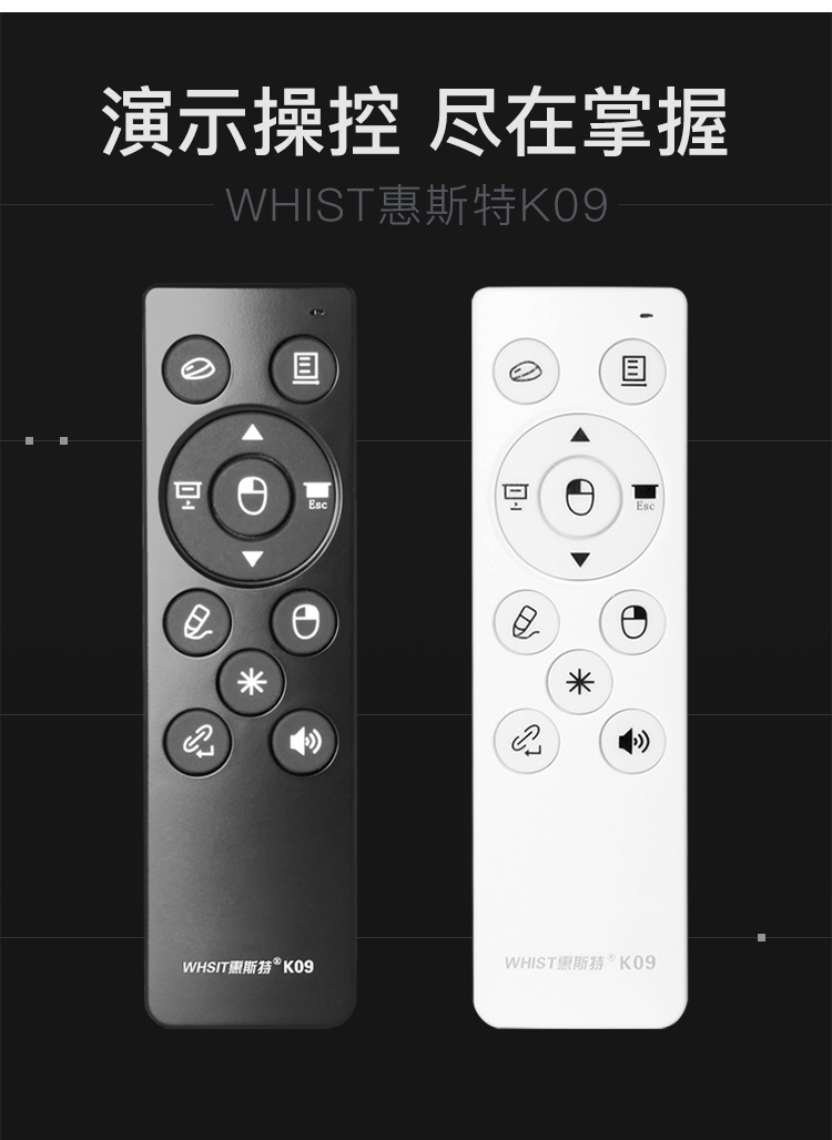 京东自营惠斯特(Whist)K09黑色 激光笔 无线空中鼠标 飞鼠遥控笔 无线翻页演示笔 PPT投影笔 翻页激光笔