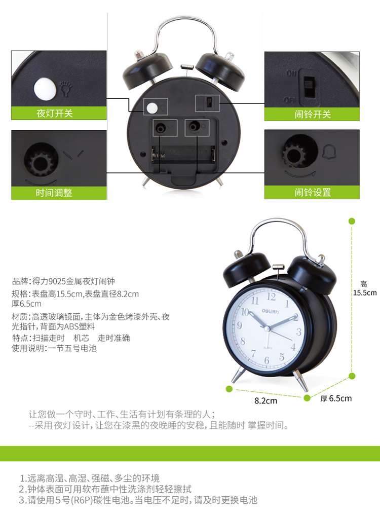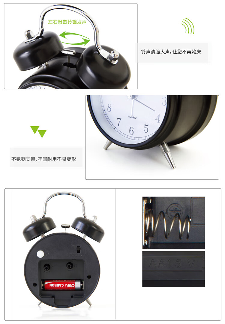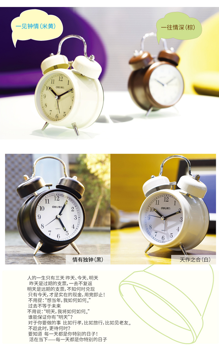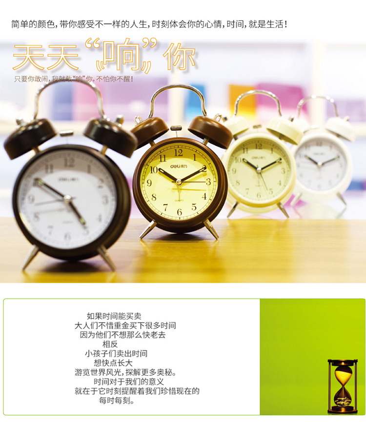 京东自营得力(deli)金属低噪音夜光闹钟 儿童闹钟 颜色随机